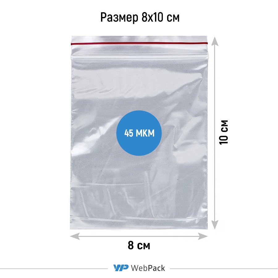 - Прозрачные пакеты с замком Зип-Лок 8x10 cм, толщина 45 мкм, предназначены для фасовки, хранения и продажи штучной и сыпучей продукции.