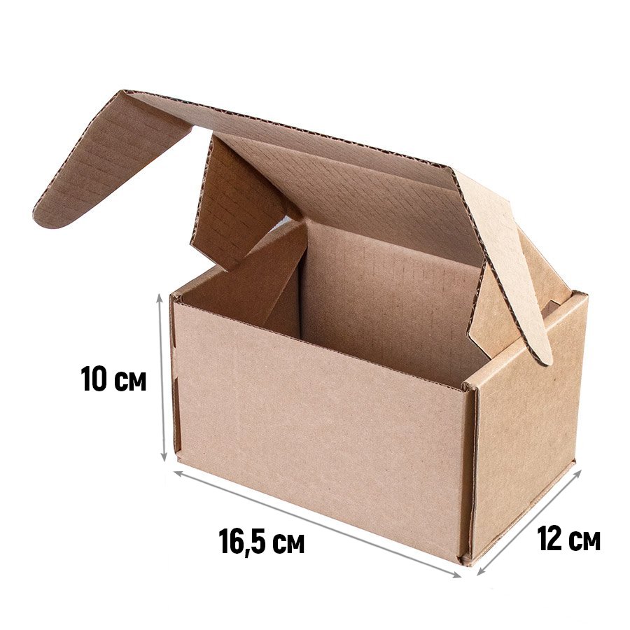 - Самосборные короба бурого цвета, внутренний размер 16,5x12x10 см, используются для упаковки и доставки заказов в интернет-магазинах, в курьерских службах и на маркетплейсах.