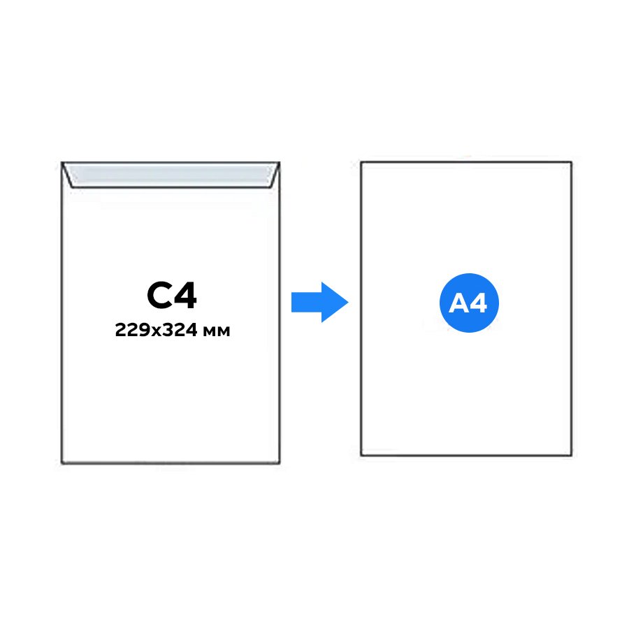 - Конверт почтовый C4, размер 229x324 мм — используется для отправки частных писем, открыток, квитанций, деловой корреспонденции, рекламных рассылок и других типов документов.
