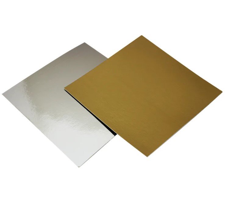 Подложка ламинированная, квадратной формы 15x15 см, цвет золото/серебро. Подходит для упаковки таких продуктов, как торты, пирожные, различная выпечка, деликатесная нарезка (мясо, сыры, рыба). Подложка необходима для придания продукции аппетитного внешнего вида и создания жесткого основания, что делает дальнейшую транспортировку и хранение простыми и удобными.