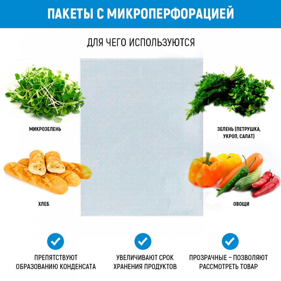 - Применяются для фасовки хлебобулочных изделий, овощей, фруктов, зелени (укропа, петрушки, кинзы, микрозелени и др.)