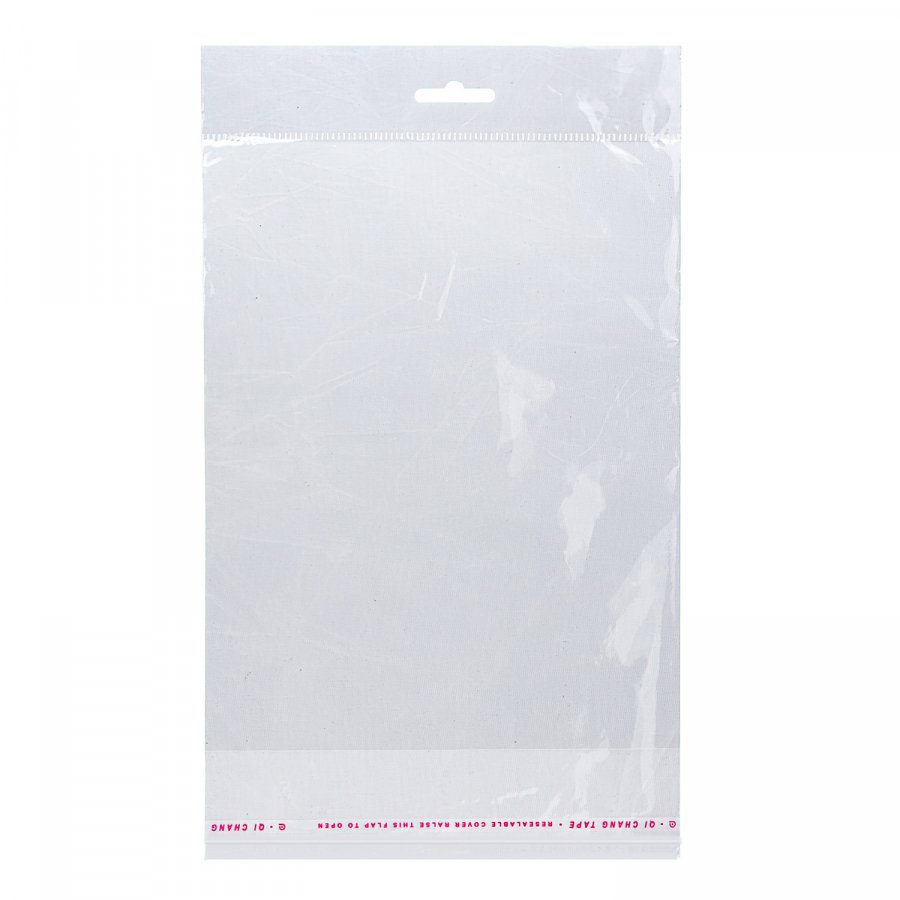 Полипропиленовый пакет 18*29см(+4 см), 25мкм, с прозр.еврослотом, клапаном и скотчем, 100 шт./уп.