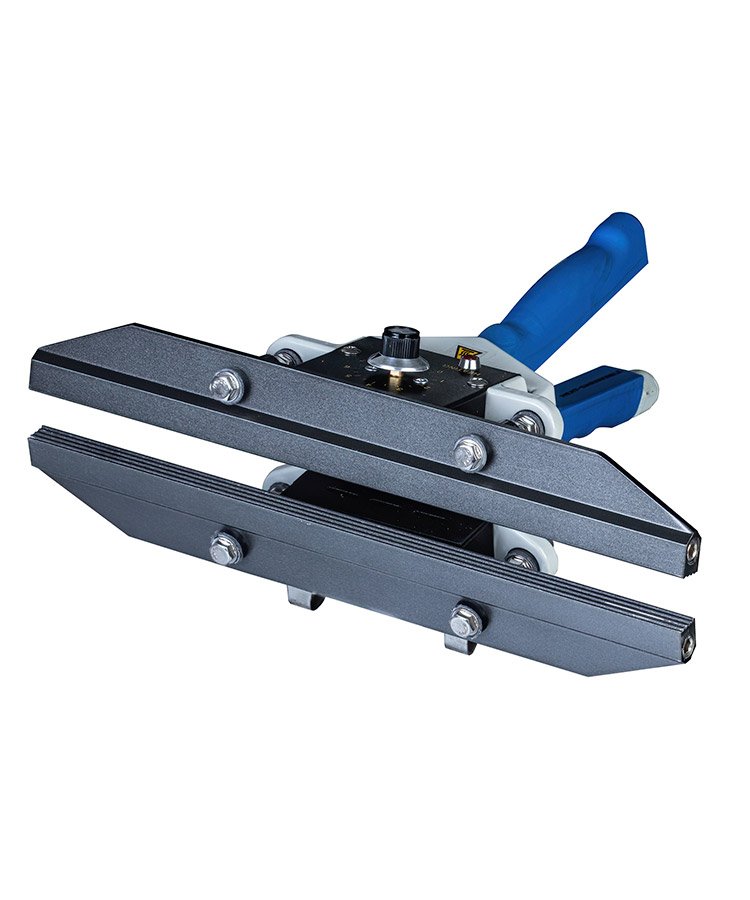Длина запаечной планки в данной модели – 300 мм, мощность нагрева 500 Вт. Две запаечные губки (верхняя и нижняя) формируют прочный шов. Температура регулируется при помощи температурного контроллера, ширина шва 10 мм, шов рифленый.