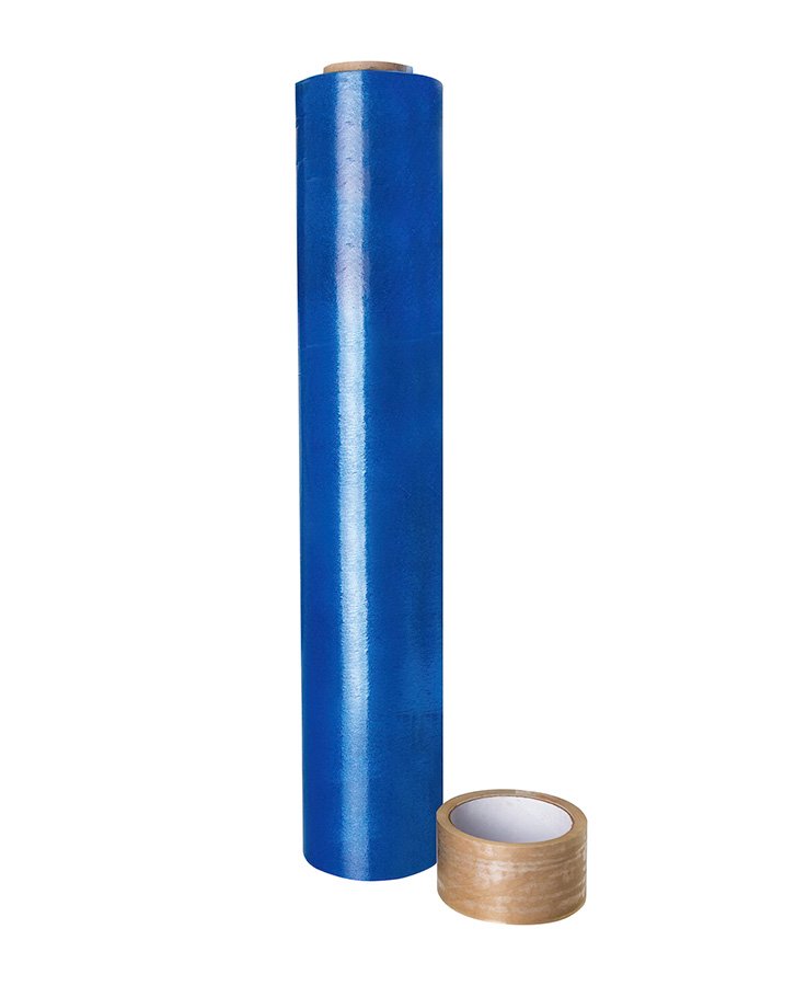Синяя стрейч пленка применяется в промышленности, на логистических предприятиях, в торговых центрах. Используется для упаковки багажа, мебели, при переезде.