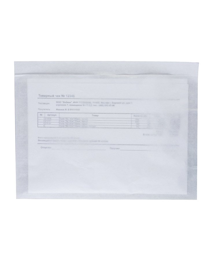 Конверт самоклеящийся С5 для сопроводительных документов с клеевым слоем на клапане. Вмещает лист формата А5 или сложенный вдвое стандартный лист формата А4. Оборотная сторона конверта полностью покрыта клеевым слоем и защитной силиконизированной бумагой для приклеивания на картонные коробки, курьерские пакеты, папки, конверты и поддоны с продукцией. Цвет белый. Одна из сторон - прозрачная.