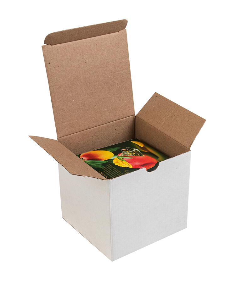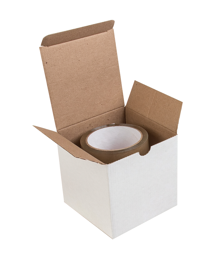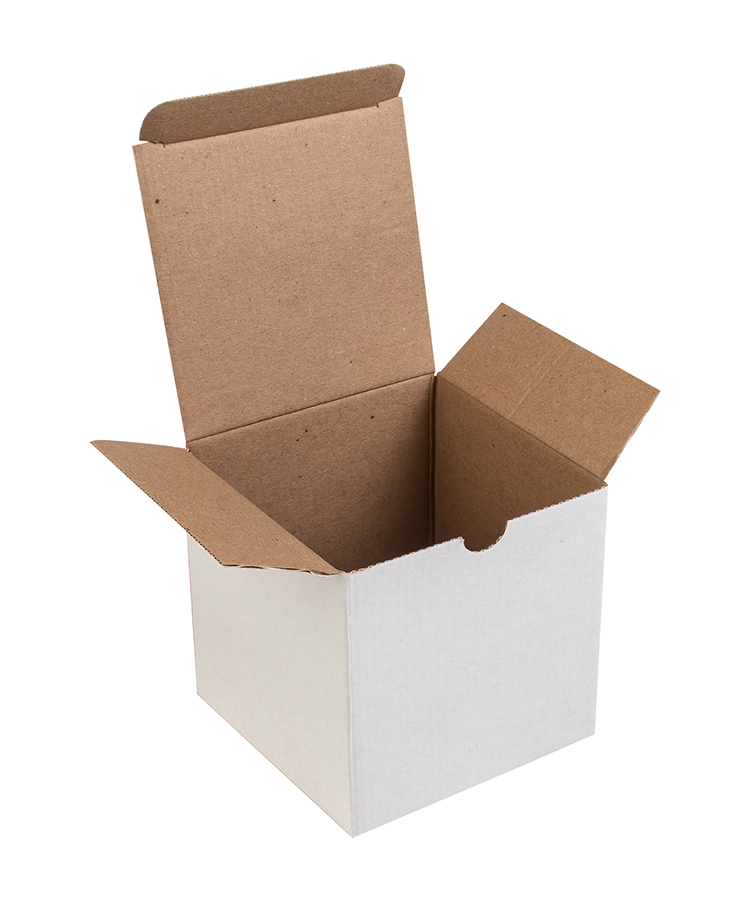 - Самосборные короба белого цвета и бурые внутри для упаковки чашек и кружек, внутренний размер 12x12x12 см.
