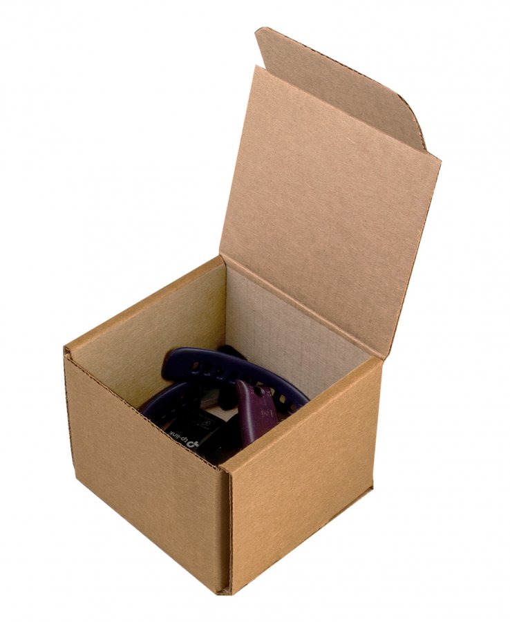 • Самосборные короба бурого цвета с откидной крышкой и замком, внутренний размер 7x7x6 см, используются для упаковки и доставки заказов в интернет-магазинах, в курьерских службах и на маркетплейсах.