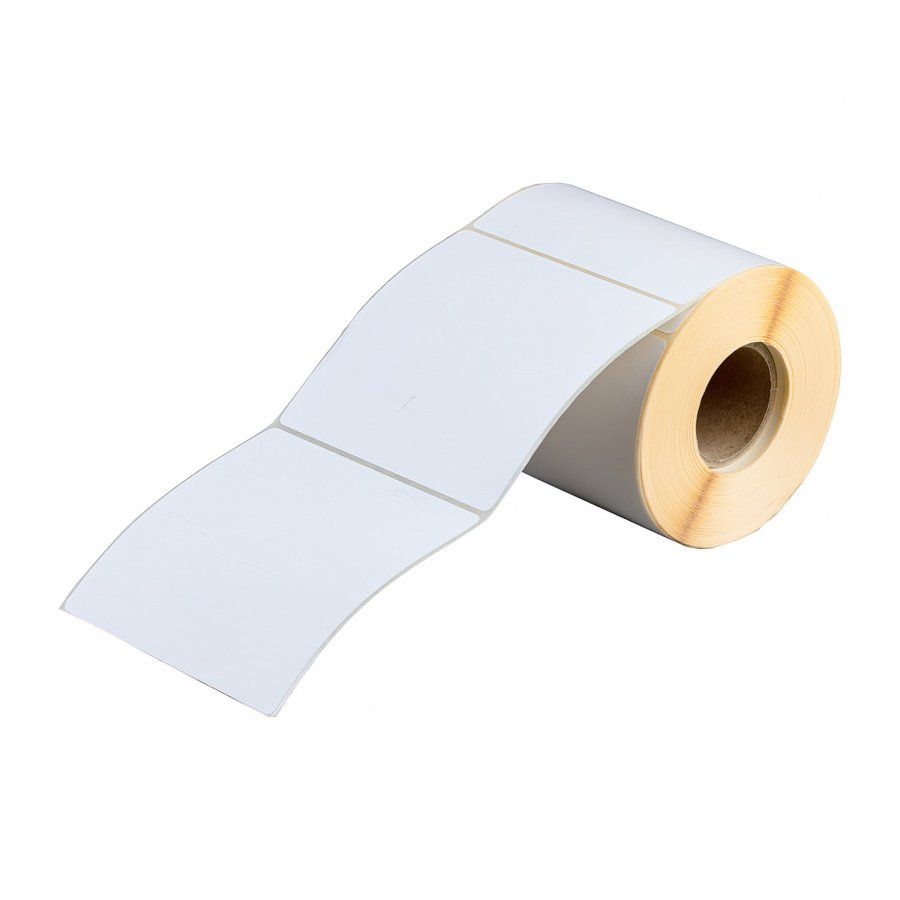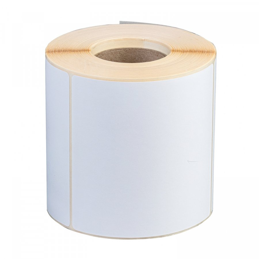 - Белые термоэтикетки 100x100 мм используются для маркировки различных товаров.