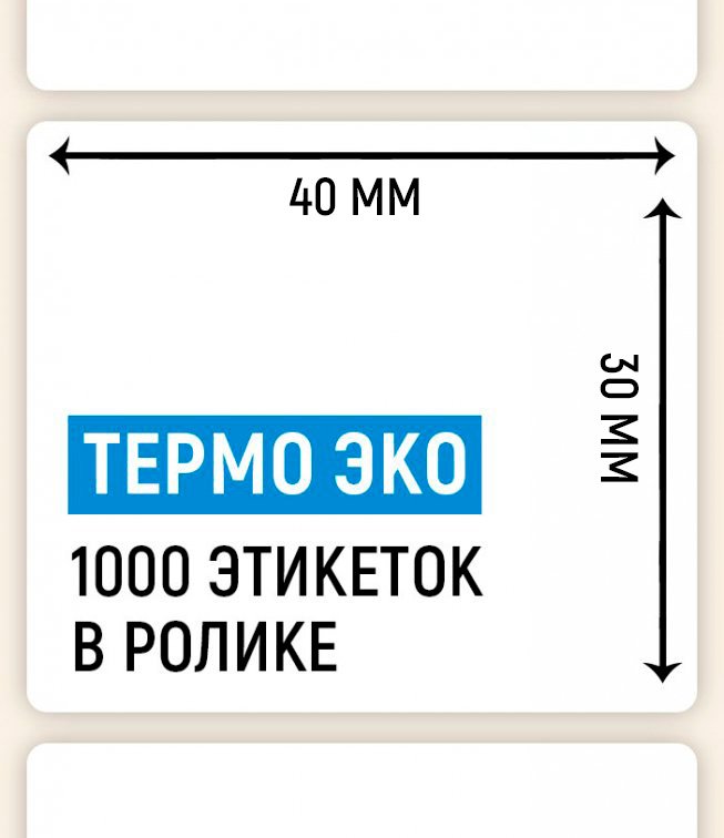 - Термоэтикетка ЭКО 40x30 мм используется для маркировки товаров на маркетплейсе Wildberries, а также для продукции, не подлежащей длительному хранению. Подходят для маркировки продуктов в магазинах непосредственно перед самой реализацией.