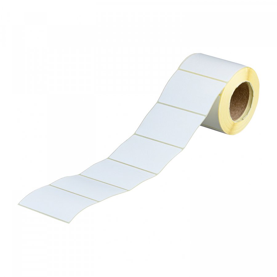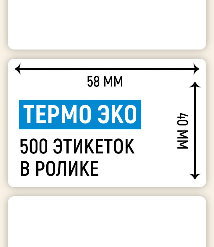 - Белые термоэтикетки ЭКО 58x40 мм на самоклеящейся основе используются для маркировки продукции, не подлежащей длительному хранению.