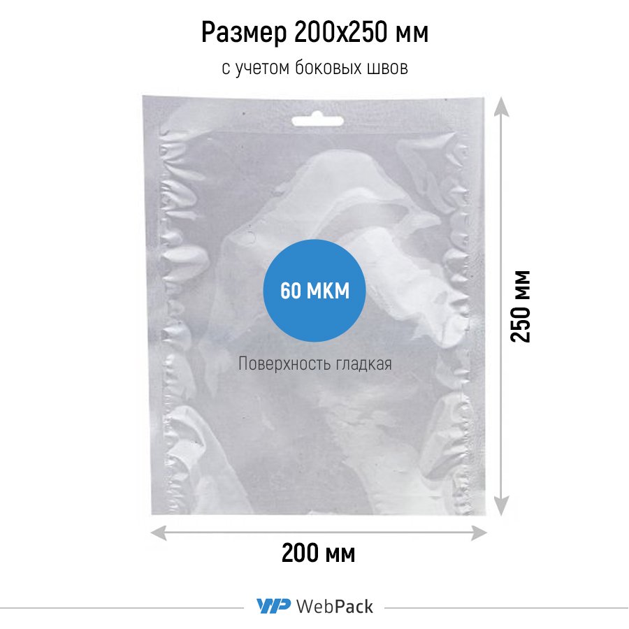 Вакуумный пакет 200*250мм, ПЭТ/ПЭ, 60 мкм,с еврослотом