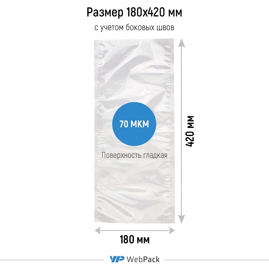 - Вакуумные пакеты ПА/ПЭ 18x42 см, толщина 70 мкм используются для герметичной упаковки продуктов питания. Размер указан с учетом боковых швов, которые расположены с 3-х сторон (примерно по 0,7-1,2 см). Полезный размер ~ 16x41см. Поверхность пакетов гладкая, не рифленая.
